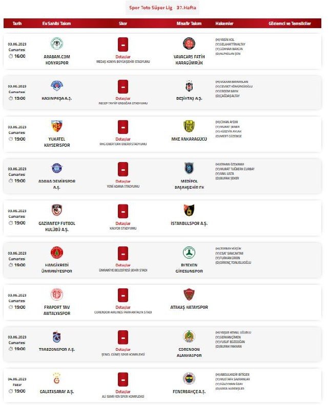 Spor Toto Süper Lig'in 37. haftasında Galatasaray ile Fenerbahçe, pazar günü Nef Stadyumu'nda karşı karşıya gelecek.