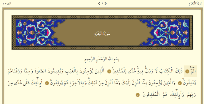 1 ve 3. cüzün içerisinde yer alan Bakara Suresi, 2. sayfada başlamaktadır. Son ayeti ise 50. sayfadadır.