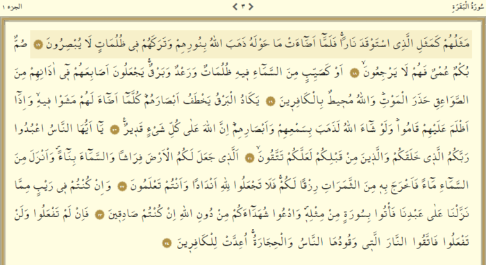 Meselühüm ke meselillezistevkade nara* fe lemma edaet ma havlehu zehebellahü bi nurihim ve terakehüm fı zulümatil la yübsırun