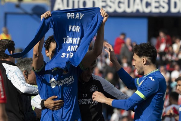 Öte yandan iki takımın oyuncuları, karşılaşma öncesi gerçekleştirilen seremoniye "Türkiye ve Suriye için dayanışma" yazılı tişörtlerle çıktı ve mücadele öncesi birlikte poz verdi.