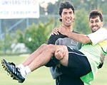 Erciyesspor'un Sebat'tan transfer ettiği Metin Aktaş ile Malatya'dan aldığı Fazlı, dostluklarıyla göz kamaştırıyor. Erciyes'e gelmeden önce de çok iyi arkadaş olan Metin ve Fazlı, kampta birbirlerinden hiç ayrılmazken, "Birimiz atacağız, birimiz tutacağız, Erciyes'i başarıya taşıyacağız" diyorlar.