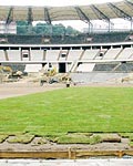 İNÖNÜ Stadyumu'nda sahaya çimlerin serilmesine başlandı. Çalışmalar 5 Ağustos'a kadar sürecek. Ardından bakım yapılacak, çimler güçlendirilecek. Saha tam anlamıyla 15 Eylül tarihinde hazır olacak.