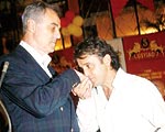 1905 G.Saraylı Yönetici ve İşadamları Derneği (GSYİAD), yarın jübile yapacak olan Suat Kaya onuruna kokteyl verdi. Derneğin Balmumcu'daki merkezinde verilen kokteyle, G.Saray Başkanı Özhan Canaydın, yöneticiler Turgay Kıran, Refik Arkan ve GSYİAD Başkanı Ulvi Suvarioğlu katıldı. Suat'ın eşi ve kızıyla birlikte katıldığı gecede bir konuşma yapan Başkan Özhan Canaydın, sarı-kırmızılı futbolcunun, onurlu bir spor yaşamını en üst seviyede bıraktığını kaydederek, "Suat, kişiliği ve davranışlarıyla örnek bir G.Saraylı olduğunu her zaman göstermiştir" dedi. Suat ise "Jübilemle, sadece formamı çıkaracağım. G.Saray'a hizmetim ise ölene dek sürecek" dedi. Suat'ın gecede imzaladığı forması ise ileriki günlerde www.pazaryerim.com adlı sitede açık artırmayla geliri G.Saray altyapısına bırakılmak üzere satılacak.