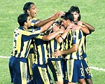 Fenerbahçeli taraftarları gollerine alıştıran Pierre van Hooijdonk dün geçen sezonki formundan uzaktı. Maç boyu kazanılan iki frikikte topun başına geçen Pierre etkisiz vuruşlar yaptı. Yine ilk yarıda kazanılan penaltıda topun başına geçen Hooijdonk topu hep attığı sağ köşeye yollayınca Shorunmu atışı kornere çeldi.