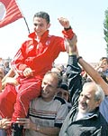 Şampiyon yine değişmedi KAYSERİ'DE devam eden Dünya Yamaç Paraşütü Şampiyonası sona erdi. Erkeklerde Geçen yılın şampiyonu Alman pilot Achim Joos birinciliği elde etti. Bayanlarda Çek pilot Petra Krausova şampiyonanın galibiydi. Türk pilotlardan Semih Sayır 11., İngiliz asıllı Simon Philips 42. oldu. Takım olarak Türkiye 11. geldi.