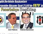 Beşiktaş Başkanı Yıldırım Demirören, yarın F.Bahçe Başkanı Aziz Yıldırım ile FB TV'ye çıkacak. Saat 21.00'de başlayacak program canlı olarak yayınlanacak. Öte yandan Beşiktaş Başkanı Demirören'in FB TV'ye çıkacak olması taraftarlardan tepki çekti. Siyah-beyazlılar, internet sitelerinde, maçın İnönü'de olması nedeniyle buluşmanın BJK TV'de olması gerektiğini ifade ettiler.