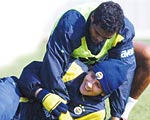 Şampiyonluk için şartlanan, lider olmasına rağmen gevşemeyen F.Bahçe dün de antrenman yaptı. Önce bayramlaştılar, sonra tempolu çalıştılar.