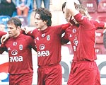 30 MAÇTA 33 GOL Trabzonspor'ungolcü oyuncusu Fatih Tekke, toplam 30 maçta 21 gol atmayı başardı. Ligde attığı 19 golle "gol krallığı" yarışında ilk sırada bulunan Fatih, 1 gol Avrupa Şampiyonlar Ligi ön eleme turunda, 1 gol de Türkiye Kupası'nda attı. Gökdeniz Karadeniz ise ligde 10 gol atarken, 1 gol Avrupa Şampiyonlar Ligi ön eleme turunda, 1 gol de UEFA Kupası'nda kaydetti. Böylece iki oyuncu, toplam 30 maçta 33 gol atmayı başarıp Türkiye'de bir çok golcü futbolcuyu geride bıraktılar.