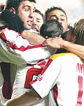 GOLÜ ATIP KAÇIYOR Daha önce 90 dakika bitmek bilmeyen enerjisi ve presiyle bir döneme damgasını vuran Galatasaray'ın teknik direktör Gheorghe Hagi'yle mantelitesinde değişiklik oldu. Rumen teknik adam yönetiminde sarı-kırmızılılar enerjisini daha tasarruflu kullanıyor. Maçın başında rakibine büyük baskı uygulayan ve şoka uğratan Cimbom, bir an önce maçı kopartmayı ve öne geçmeyi hedefliyor. Bunda da çoğu maçlarda başarılı olan sarı-kırmızılılar, ilk ve ikinci yarının başlarındaki futbollarını rölantiye alıyor.