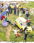 * Seyircileri Ezdi Romanya'da önceki gün yapılan bir rallide facianın eşiğinden dönüldü. Düz yolda bile araba kullanmayı bilmeyen pilot ralli yapmaya kalkışınca az daha 'katil' oluyordu. Cluj Napoca yakınlarında Kolozsvar mevkiinde pistten çıkan otomobil sürücüsü, ralliyi izlemeye gelen seyircileri ezdi.