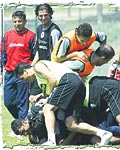 ÜÇ HAZIRLIK MAÇI Taraftarları ile toplantı yapacaklarını sözlerine ilave eden Karapınar, "Yapacağımız toplantılarda onları stada çekmenin planlarını yapıyoruz. Stadı doldursunlar, onların desteği ile ile coşacak olan Konyaspor ligde fırtına gibi esecek. Bunun için onlara garanti veririm" şeklinde ifade kullandı. Teknik direktör Aykut Kocaman da "Bolu'da iki hazırlık maçı yaptık. Eksiklerimi gördük. Bu aksaklığı gidereceğiz. Çok gerekirse transfer yapabiliriz. Takım kafamda şekillenmeye başladı. Bugün Sakarya ile, daha sonra da Erciyes ve Denizlispor ile karşılacağız" diye konuştu.