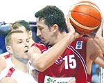 Normal Süre: 79-79 Avrupa Şampiyonası'nda Basketbol Takımımız, Bulgaristan'ı normal süresi 79-79 biten maçın uzatmasında 94-89 yenerek ilk galibiyetini aldı ve gruptan çıkmayı garantiledi. Bulgarlar ilk periyodu 23-19 devreyi 47-40, 3. çeyreği de 67-57 önde geçti. Son periyot sonunda skor 79-79 olurken uzatmada maçı kazandık. * Hakemler: Z.Sutulovic (Sırb.Karadağ), Sato Pukl (Slovenya), Shuel Bachar (Hırvatistan), * Bulgaristan: Banev 4, Radianov, Videnov 23, Bozov, Davidov 4, Angelov 6, Georgiev 6, Mladenov 15, Dimitrov 10, Stoykov 21 * Türkiye: Kerem Tunçeri 9, Ermal 2, Mirsad 19, Ender 2, Cenk, Serkan 16, İbrahim 9, Kerem Gönlüm 4, Mehmet 13, Kaya 3, Hidayet 17 * Periyotlar: 23-19, 24-21 (47-40) 20-17, 10- 22 (79-79), Uzatma: 10-15
