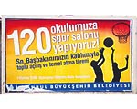 İstanbul'daki büyükşehir ilanlarını siz de görmüşsünüzdür. 120 spor salonu yapılıyormuş. 2006 hizmetler kitabında bu sayı 150. Voleybolda şampiyonluk kovalayan, bu yıl filede Avrupa'da Türkiye'yi temsil edecek İstanbul Büyükşehir Belediyesi'nin afişlerinde basketbol logosu var.