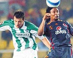 9 dakika Ümit Karan'ın güzel pasıyla penaltı noktası üzerinde topla buluşan Hakan Şükür, uygun durumda meşin yuvarlağa vurmakta gecikince, Konyaspor savunması araya girerek tehlikeyi önledi.