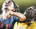 Galatasaraylı taraftarlar, futbolcular ve teknik kadro, dünkü maçta A.Gücü'nün attığı golden sonra adeta çılgına döndü. Ümit Karan'ın golünden 5 dakika sonra gelişen A.Gücü atağında, soldan gelen ortayı Mustafa Özkan kafayla kaleye gönderdi. Kolombiyalı file bekçisi Mondragon topu son anda çeldi.