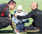 Florya'da dünkü idmanın yıldızı Hasan Şaş'ın oğlu Yusuf Deniz'di... Mondragon ve diğer oyuncular minik G.Saraylı ile şakalaşırken, Hasan da oğlu ile top oynadı. Bu arada Şaş ve Mondi'nin Sakarya maçında formalarını teslim alacakları bildirildi.