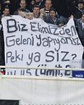 Hepiniz sahtekâr "Rezil olduk artık yeter" "Beşiktaşlı olmayan gitsin" "En büyük taraftar, futbolcular sahtekâr" diye bağıran siyah-beyazlılar, yönetim için yapılan istifa çağrısında ise ikiye bölündü. Çarşı grubunun kayıtsız kalması üzerine, "Çarşı yönetime sahip çık" tezahüratları yükseldi.