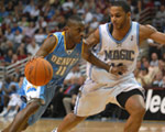 Denver Nuggets'ta ise Carmelo Anthony maç başı 30 sayıdan fazla atma serisine Magic karşısında da devam ederken, mücadeleyi 34 sayıyla bitirdi ve sahanın en skorer oyuncusu oldu. J.R. Smith 17 sayı ve 5 ribauntla, Marcus Camby ise 13 sayı ve 12 ribauntla double-double yaparak oyuna katkıda bulundu.