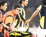 2. yarının başında sol kasığından sakatlanan F.Bahçe kaptanı, sedyeyle kenara alındı. Ümit Özat'ın en az bir ay oynayamayacağı açıklandı.