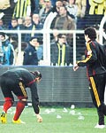Moral bozmak için Ezeli rekabetin çirkin yüzü, dün gece daha maç başlamadan kendini gösterdi. Başlama düdüğüne 1.5 saat kala zemini incelemek için sahaya çıkan G.Saraylı futbolcular ve teknik heyet, tribünlerden atılan yabancı maddeler nedeniyle sıkıntılı anlar yaşadı. Küfürlerle rakibin moralini bozmaya çalışan sarı-lacivertliler, sarı-