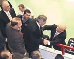 Voleybol Erkekler Ligi'ndeki olaylı maçta ikinci Fenerbahçe, lider Halkbank'ı 3-2 yendi. Fenerbahçe Başkanı Aziz Yıldırım 3. set sonrasında "Hareket yaptı" dediği Volkan'ın üzerine yürüdü. Hakem Kadir İlbeyi de olayları yatıştırmaya çalıştı. Setler 2-2 iken, Halkbank antrenörü Salih Yergi sahaya yedek oyuncularını sürdü. F.Bahçe son seti alarak lideri