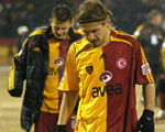 ... Galatasaray'ın kupada Erciyes'e karşı oynadığı kötü futbolun nedeni buzlu zemindi. Kupa sonrası Kayseri'de kalmak iklim koşullarına uyum sağlamak adına doğru bir karardı. Kayseri maçı Galatasaray için kırılma noktasıydı. Ama Galatasaray'ın zemine itiraz etme şansı yoktu. Adnan Polat'ın üç gün boyunca maçın ciddiyetini anlatmak adına yaptığı terapiler yeterli olmamış. Galatasaray dün yarım takımla mücadele etti....
