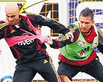 G.Saray, G.Antep maçının hazırlıkla-rına ara vermeden başladı. Vestel'ekarşı oynayanlar koşarken, diğeroyuncular 2'ye 2 ve 4'e 4 çift kale maç yaptı. Hafif sakatlık geçiren Ha-san Şaş, Emre ve Tolga korkuttu.