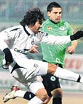 42 dakika Beşiktaş atağı sağdan gelişti. Ali Tandoğan çizgiye kadar inerek kavisli bir orta yaptı. Ceza sahası içinde rakiplerinden önce topa yükselen Bobo etkisiz bir kafa vuruşu yapınca top Özden'in kucağında kaldı.