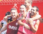 İSTENMEK GÜZEL Golcü oyuncu, idman sonunda, "Başka bir kulüp tarafından istenmek güzel bir duygu. Ama ben bu konuda bir şey söylemedim ki bir açıklama yapayım. Bazı olaylar bizim dışımızda gelişti. Söyleyecek başka bir şey yok. Ben G.Saray'ın sözleşmeli futbolcusuyum" açıklamasını yaptı. Ümit'in konuşmadan önce genel menajer Mustafa Turgun ile görüşmesi dikkat çekti. BIRAKMAYIZ SENİ Antrenmanda son derece keyifli olan Ümit Karan'a arkadaşları da yaptıkları şakalarla moral verdiler. Çalışmayı izleyen sarı-kırmızılı taraftarlar ise golcü oyuncuyu tesislerin tribünlerine çağırıp, "Bu forma kutsaldır nasip olmaz herkese, bırakmayız seni bir yere, 2000 ruhu doğmak üzere, Cimbom'un yılı olacak bu sene" şeklinde tezahürat yaptılar.