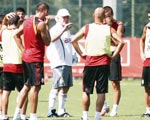 Dün Florya Metin Oktay Tesisleri'nde gerçekleştirilen antrenmanın öncesinde Karl Heniz Feldkamp fırtınası vardı. Alman çalıştırıcı, saha içinde oyuncularını toplayarak elinde kalem ve yazı tahtası ile yaklaşık 30 dakika süren bir toplantı yaptı. Sürekli olarak elindeki tahtaya bir şeyler yazarak oyuncularına anlatan Alman çalıştırıcı, toplantının bitiminde