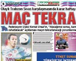 FUTBOL Federasyonu, saatler süren toplantı sonrasında Trabzon-Sivas maçının tarafsız sahada tekrarlanmasına karar verdi. Maçın hakemi Bülent Demirlek hakkında soruşturma açılacak. Trabzon Başkanı Nuri Albayrak ise PFDK'ya sevk edildi. Maç 0-0 başlayacak ve 90 dakika oynanacak.