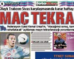 TÜRKİYE'nin en güçlü ve en çok satan spor gazetesi Fotomaç, olaylı Trabzon-Sivas maçıyla ilgili Futbol Federasyonu'nun vereceği kararı, 25 Ağustos'ta yandaki bu manşetle okurlarına duyurdu. Diğer gazeteler ise Sivasspor'u 3-0 galip ilan ederek ters köşe oldu...