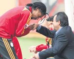 G.Saray'ın sempatik oyuncusu Song, dün yine muziplik yaptı. 29 Ekim Cumhuriyet Bayramı nedeniyle yapılan tören sırasında Futbol A.Ş. Genel Müdürü Adnan Sezgin'in elini öpen Kamerunlu oyuncu bayram harçlığını da kopardı.