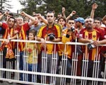 SARI-kırmızılı taraftarlar F.Bahçe derbisi öncesi takımlarına moral vermek için seferber oldu. Florya'da dün sabah yapılan idmanı çok sayıda taraftar izlerken, yaptıkları tezahüratlarla oyunculara destek oldular. Sahaya giren bir taraftarın oyunculara ulaşması ise güvenlik tarafından engellendi.