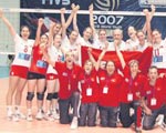 Türkiye'de 2007 Geride bıraktığımız yıl voleybolda 4 flaş olay, yıldız kızların Meksika'da dünya ikinciliği, Üniversite Erkek Milli Takımı'nın Tayland'ta ÜNİ- VERSİADE şampiyonluğu, A Bayan Takımı'nın Ank a r a ' d a Grand Prix Finalleri'ne ve Olimpiyat Elemeleri 2. turuna kalması oldu. 2007'yi şöyle bir anımsayalım. ARKAS ile Eczacıbaşı yine lig şampiyonu oldular. Avrupa'da kulüplerimiz başarılı olamadı. Bayan A Milli Takımı, İsviçre'deki Montrö Turnuvası'nda 6. olurken, Boris Yeltsin Turnuvası'nda da 4. sırada kaldı. İlk kez yapılan Karadeniz Oyunları'nda yıldız kızlar Trabzon'da şampiyon oldu. Balkan Gençler Şampiyonası'nda Türkiye, erkeklerde Şarköy'de 3. olurken, bayanlarda Sırbistan'da 5.'likte kaldı.