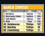 GALATASARAY son yıllarda aldığı başarısız sonuçlara rağmen Avrupa'nın sayılı takımları arasında yer bulmaya devam ediyor. Uluslararası Futbol Tarihi ve İstatistikleri Federasyonu'nun, 1991 ile 31 Aralık 2007 yılları arasındaki maçları göz önüne alarak yaptığı değerlendirmede Galatasaray 42. sırada yer aldı. 3 Türk takımının ilk 100'e girdiği listede
