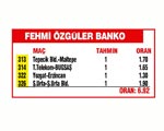 314 T. Telekom- Bugsaş 1 1.65 Türk Telekom, 2. Grup'ta oynadığı 18 karşılaşmada 8 galibiyet, 5 beraberlik ve 5 yenilgi alarak liderlik koltuğuna oturdu. Başkent ekibi, grubun en fazla gol atan ve en az gol yiyen takımı. Türk Telekom, iddaacıları yanıltmaz. 321 D. Dere- Pazar 1 1.70 Değirmendere, devre arasında kadrosunu kaliteli oyuncularla takviye etti. Karadeniz ekibi, deplasmanda Erzincanspor'u 4-3 yenerken, iki gol atan Cemre ile savunmada görev yapan Miraç takımın yıldızıydı. Pazarspor, ilk maçında Çankırı Belediyespor ile yaptığı karşılaşmada berabere kaldı. Hazırlık döneminde sık sık izlediğim Değirmendere'yi favori olarak gösterebilirim. 322 Yozgat- Erzincan 1 1.30 Yozgatspor, ligin iyi takımların biri. Kırmızı-siyahlılar, Araklıspor deplasmanından 1 puanla dönerek önemli bir iş yaptı. Konuk ekip, geçtiğimiz hafta Değirmendere'ye 4-3 yenilerek çok önemli 3 puan yitirdi. Yimpaş Yozgatspor'a güvenebilirsiniz. 326 Ş. Urfa- Ş. Urfa Bld. 1 1.90 Şanlıurfaspor, K.Maraş ile deplasmanda 1-1 berabere kalırken, galibiyeti kaçıran taraftı. Karşılaşmayı 1-0 önde götüren yeşil-sarılılar, son dakikalar içinde Veli'nin attığı gole engel olamayınca, 1 puanla yetinmek zorunda kaldı. 3 puanın sahibi Şanlıurfaspor olur.