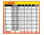 G.Saray son 1 3 sezonun son 7 hafta maçları göz önüne alındığında oynadığı 91 maçta 60 galibiyet, 18 beraberlik, 13 yenilgi ile 198 puan toplamış ve sezon başına 15.23 puan almış oldu.