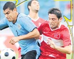 DEFANS 'ZAN' ALTINDA Milli Takım, Nihat'ın 51. dakikadaki frikik golüyle yeniden öne geçti: 2-1. 78. dakikada yine Suarez, Gökhan Zan-Volkan anlaşmazlığında topu ağlarla buluşturdu: 2-2. 85'te Rodriguez penaltıdan skoru tayin etti: 2-3 Ay-yıldızlılar, finaller öncesi tam olarak hazır görünmedi, defans alarm verdi.