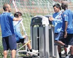Tempoyu hiç düşürmeyen bordo-mavili takım dün sabah en neşeli idmanlarından birini yaptı.
