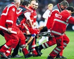 Kalp masajı da yapan doktorların çabası futbolcuyu