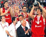 Avrupa şampiyonası eleme grubu maçları için son hazırlıklarını yapan Türkiye, Konya'da düzenlenen Efes Pilsen World Cup 7'de Bosna Hersek'i 76-70 yendi ve şampiyon oldu. Ay-yıldızlılar, bu sonuçla Zafer Bayramı'nda Türkiye'ye şampiyonluk hediye etti. İlk çeyreği 16-15 önde tamamlayan 12 Dev Adam, devreye de 38-34'lük üstünlükle