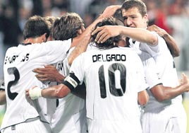 Yedeklerle el ele tutuşarak tribünlerin önüne gelen oyuncular, taraftara galibiyet sözü verdi.
