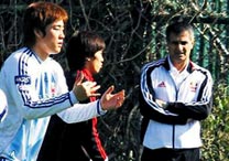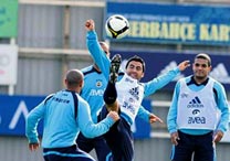 | Aragones, dün antrenmandan önce saha ortasında futbolcularla kısa... |