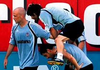 Tecrübeli çalıştırıcı idmanda oyuncularını bağırarak uyardı,...