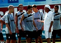 Teknik direktör Mustafa Denizli futbolcularıyla bir toplantı...