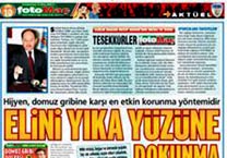 Günlük siyasi gazetelerin, manşetlerde heyecan verici laflar yerine böyle ciddi bir araştırma yapması gerekirdi diye de düşünüyorum. Şimdi bu gazetenin yani Fotomaç'ın en yetkilisi Zeki Uzundurukan'a bir teklifim var. Sağlık bakanlığınca teşekkürle karşılanan ve birçok kuruluş tarafından beğenildiği bildirilen bu "Domuz gribi dizisini" ya bir "İlave" ya da ufak bir "El kitabı" olarak dağıtın. Görmeyenler ve okuyamayanlar görüp okusunlar diye.