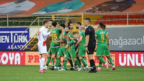 Süper Lig'de haftanın derbisinde gülen taraf Alanya oldu. Antalya'yı konuk eden turuncu-yeşilliler, 28'de öne geçti. Salih'in pasında topla buluşan Babacar'ın şutu auta gitti. VAR uyarısıyla pozisyonu inceleyen hakem Boffin'in penaltı yaptığına hükmetti. Bayazdı: 1-0. 39'da Mustafa Pektemek rakiplerini geçip vurdu, Boffin sektirdi, Mustafa kendi topunu tamamladı: 2-0.
