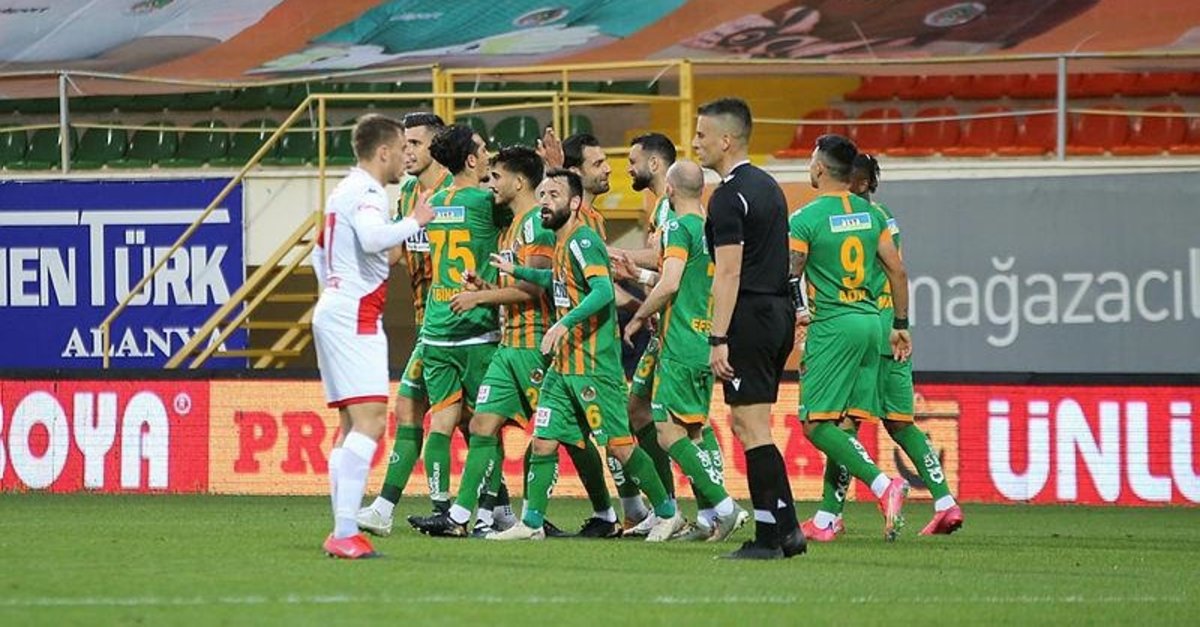 Süper Lig'de haftanın derbisinde gülen taraf Alanya oldu. Antalya'yı konuk eden turuncu-yeşilliler, 28'de öne geçti. Salih'in pasında topla buluşan Babacar'ın şutu auta gitti. VAR uyarısıyla pozisyonu inceleyen hakem Boffin'in penaltı yaptığına hükmetti. Bayazdı: 1-0. 39'da Mustafa Pektemek rakiplerini geçip vurdu, Boffin sektirdi, Mustafa kendi topunu tamamladı: 2-0.