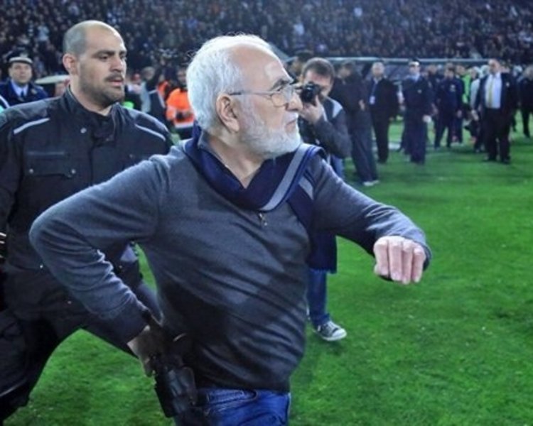 Başkan Savvidis, yaklaşık 3 hafta önceki PAOK-AEK mücadelesinde, PAOK'un tartışmalı şekilde iptal edilen golünün ardından çıkan olaylar esnasında takımını çekmek için sahaya girerken belindeki tabanca sebebiyle eleştirilmişti.